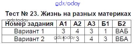 Ответы к Решение к тестам Тест №23. Жизнь на разных материках Тестам по Естествознанию для 5 класса Воронина Экзамен УМК 2015