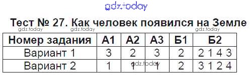 Ответы к Решение к тестам Тест №27. Как человек появился на Земле Тестам по Естествознанию для 5 класса Воронина Экзамен УМК 2015