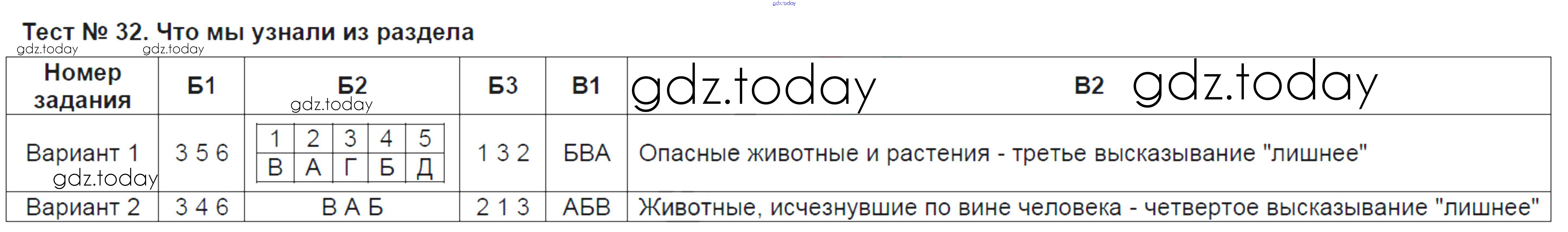 Ответы к Решение к тестам Тест №32. Что мы узнали из раздела Тестам по Естествознанию для 5 класса Воронина Экзамен УМК 2015
