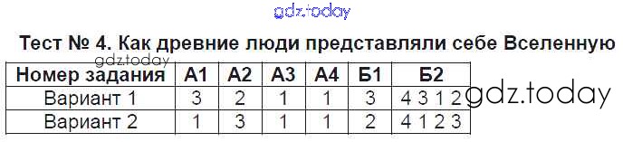 Ответы к Решение к тестам Тест №4. Как древние люди представляли себе Вселенную Тестам по Естествознанию для 5 класса Воронина Экзамен УМК 2015