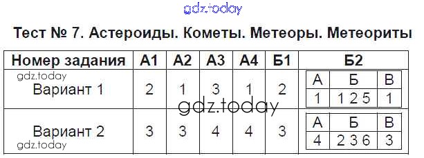Ответы к Решение к тестам Тест №7. Астероиды. Кометы. Метеоры. Метеориты Тестам по Естествознанию для 5 класса Воронина Экзамен УМК 2015