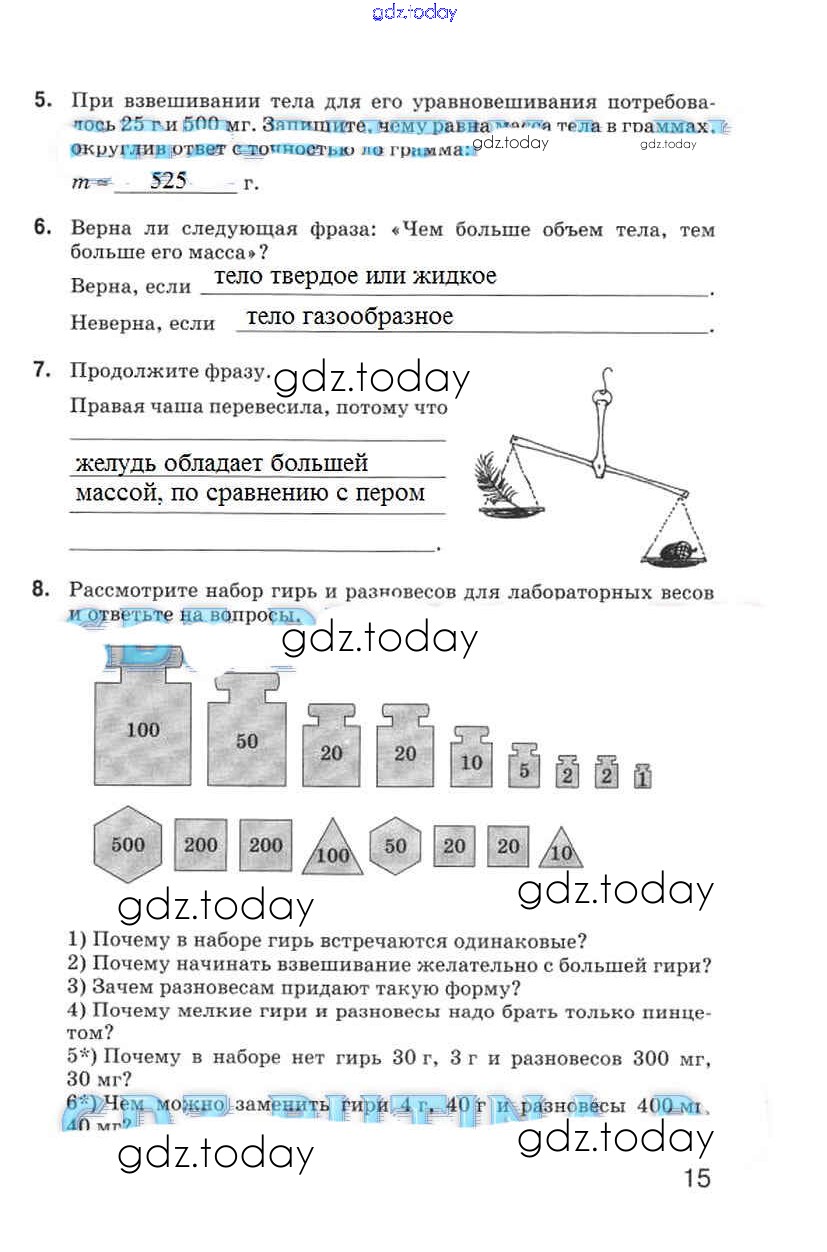 Ответы к Страницы (решение) 15 Рабочей тетради по Физике для 5 класса Гуревич, Краснов Дрофа 2012
