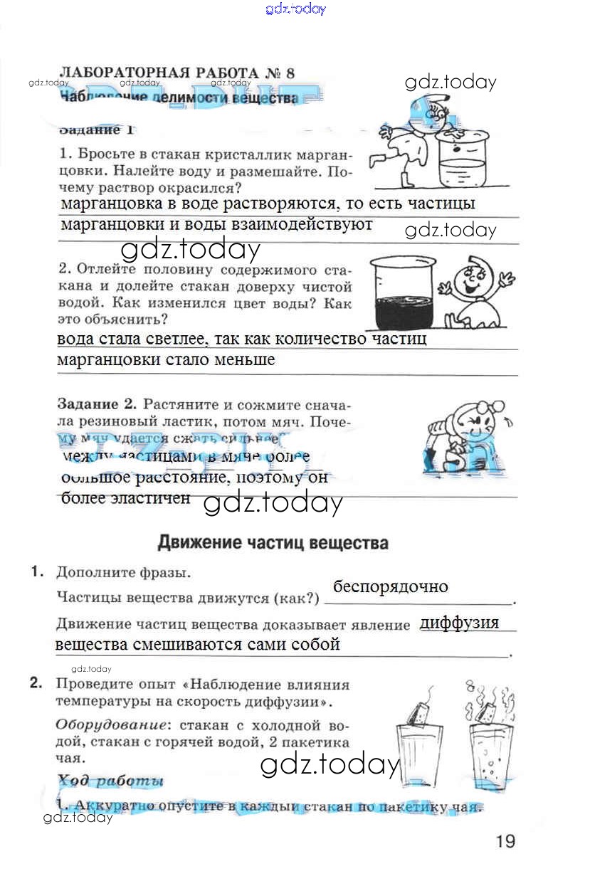 На страницах сайта gdz.today вы найдете учебный и вспомогательный материал, направленный на улучшения знаний школьной программы. ГДЗ - онлайн мир знаний Страницы (решение) 19 Рабочей тетради по Физике для 5 класса Гуревич, Краснов Дрофа 2012