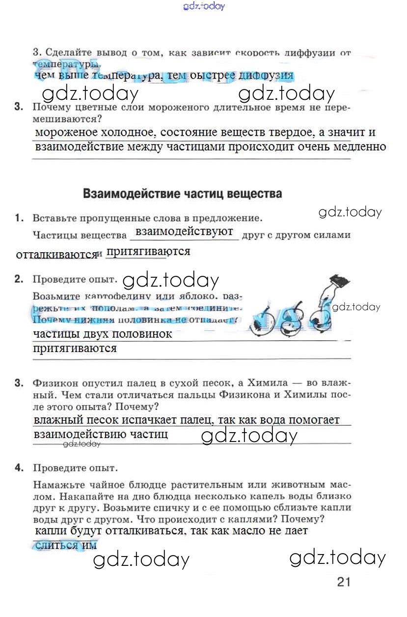 На страницах сайта gdz.today вы найдете учебный и вспомогательный материал, направленный на улучшения знаний школьной программы. ГДЗ - онлайн мир знаний Страницы (решение) 21 Рабочей тетради по Физике для 5 класса Гуревич, Краснов Дрофа 2012