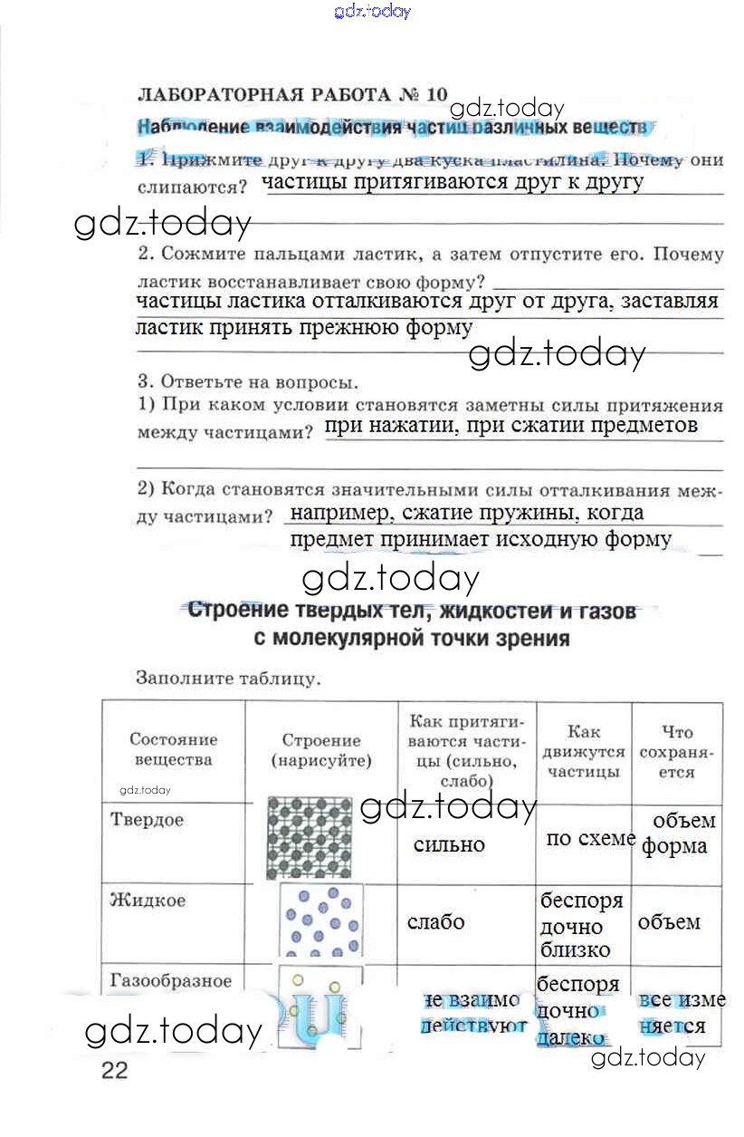 На страницах сайта gdz.today вы найдете учебный и вспомогательный материал, направленный на улучшения знаний школьной программы. ГДЗ - онлайн мир знаний Страницы (решение) 22 Рабочей тетради по Физике для 5 класса Гуревич, Краснов Дрофа 2012