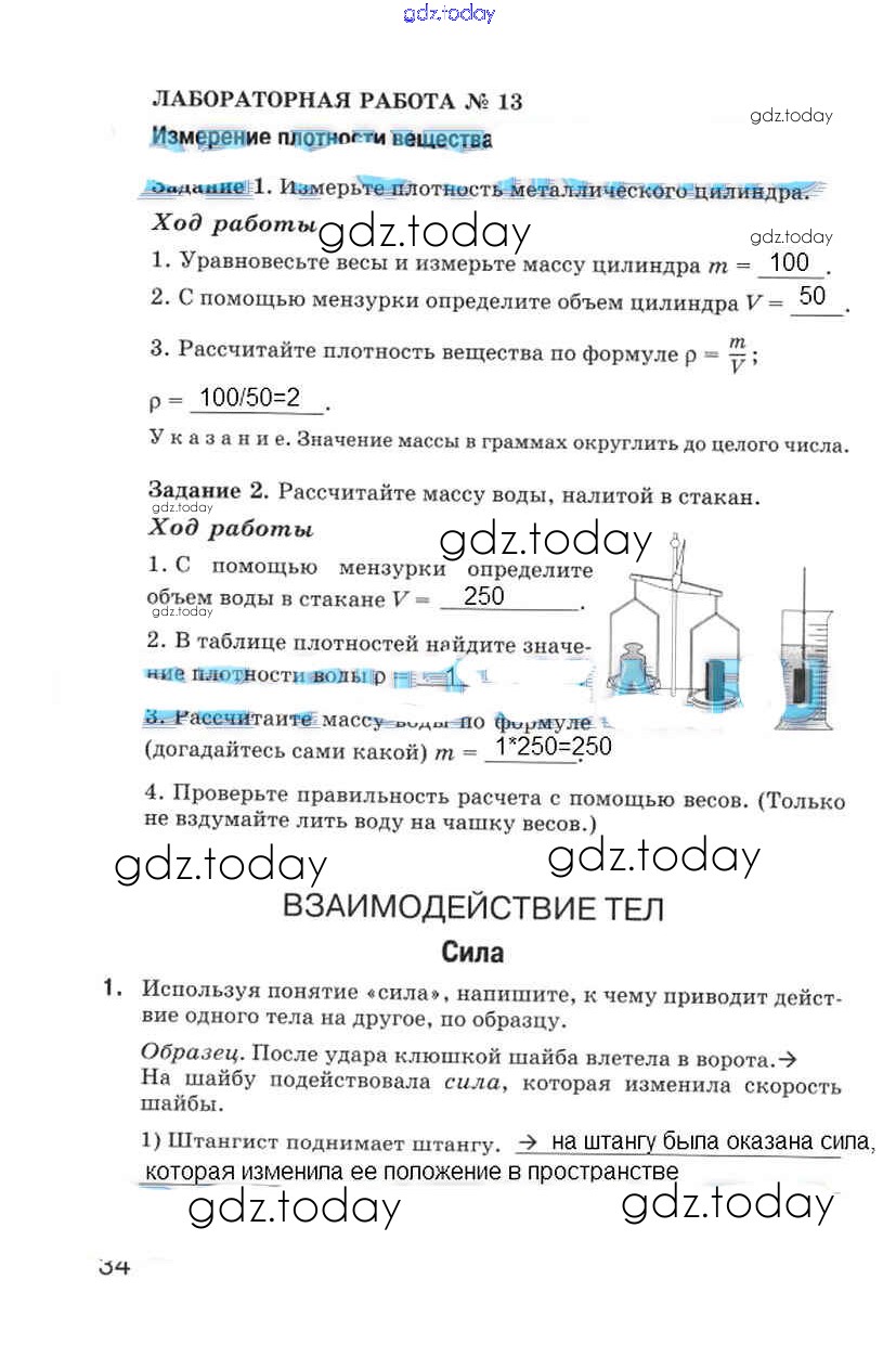На страницах сайта gdz.today вы найдете учебный и вспомогательный материал, направленный на улучшения знаний школьной программы. ГДЗ - онлайн мир знаний Страницы (решение) 34 Рабочей тетради по Физике для 5 класса Гуревич, Краснов Дрофа 2012