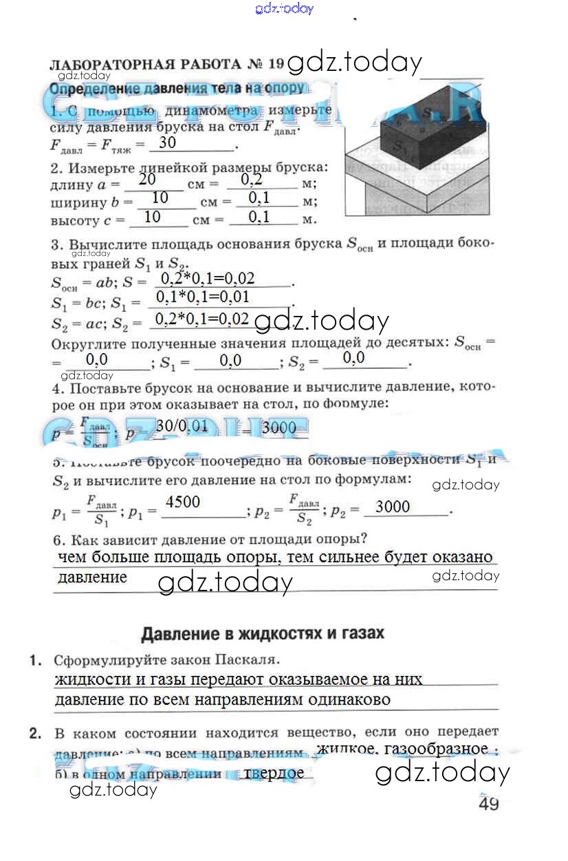 На страницах сайта gdz.today вы найдете учебный и вспомогательный материал, направленный на улучшения знаний школьной программы. ГДЗ - онлайн мир знаний Страницы (решение) 49 Рабочей тетради по Физике для 5 класса Гуревич, Краснов Дрофа 2012