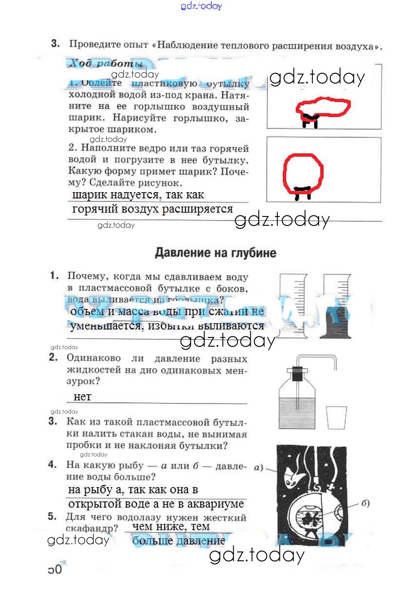 На страницах сайта gdz.today вы найдете учебный и вспомогательный материал, направленный на улучшения знаний школьной программы. ГДЗ - онлайн мир знаний Страницы (решение) 50 Рабочей тетради по Физике для 5 класса Гуревич, Краснов Дрофа 2012
