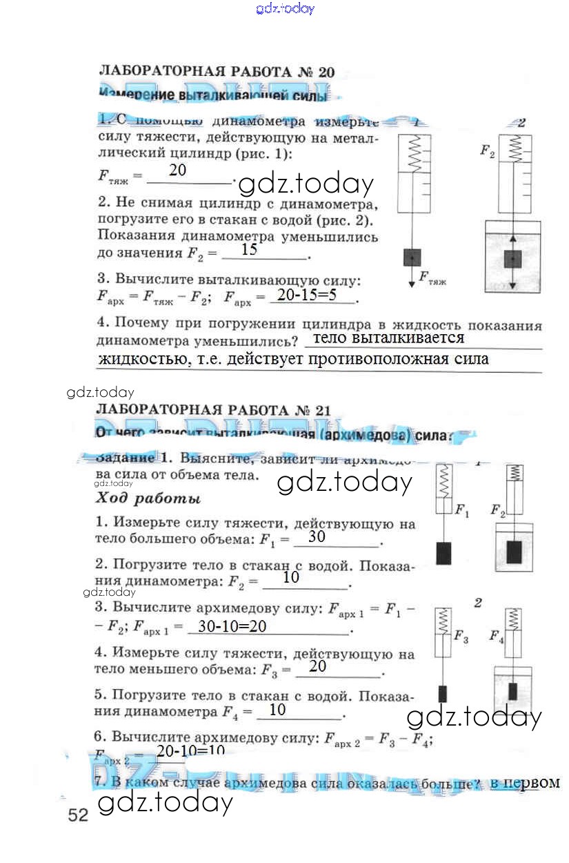 Ответы к Страницы (решение) 52 Рабочей тетради по Физике для 5 класса Гуревич, Краснов Дрофа 2012
