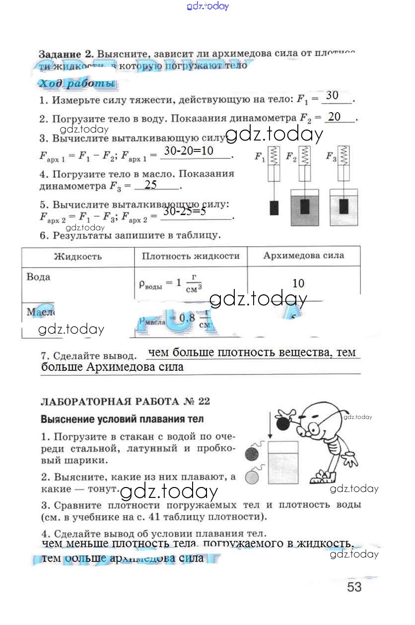 Ответы к Страницы (решение) 53 Рабочей тетради по Физике для 5 класса Гуревич, Краснов Дрофа 2012