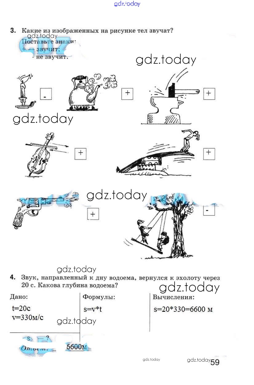 На страницах сайта gdz.today вы найдете учебный и вспомогательный материал, направленный на улучшения знаний школьной программы. ГДЗ - онлайн мир знаний Страницы (решение) 59 Рабочей тетради по Физике для 5 класса Гуревич, Краснов Дрофа 2012