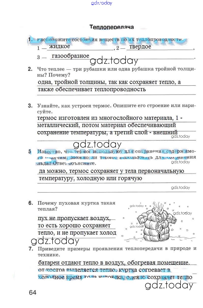 На страницах сайта gdz.today вы найдете учебный и вспомогательный материал, направленный на улучшения знаний школьной программы. ГДЗ - онлайн мир знаний Страницы (решение) 64 Рабочей тетради по Физике для 5 класса Гуревич, Краснов Дрофа 2012