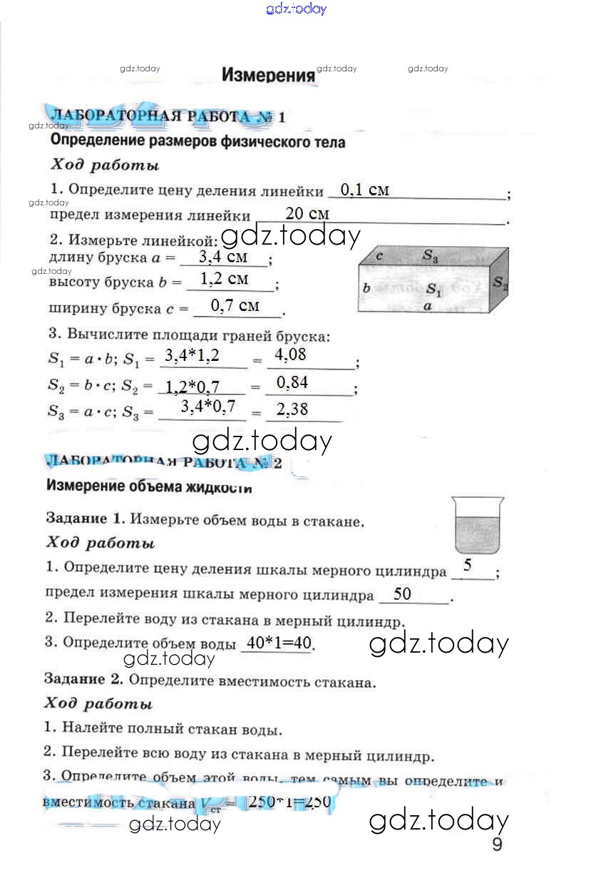 На страницах сайта gdz.today вы найдете учебный и вспомогательный материал, направленный на улучшения знаний школьной программы. ГДЗ - онлайн мир знаний Страницы (решение) 9 Рабочей тетради по Физике для 5 класса Гуревич, Краснов Дрофа 2012
