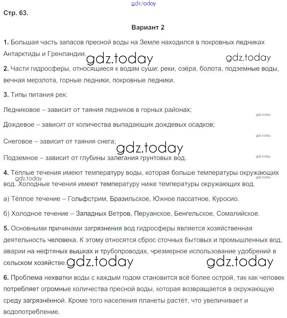 На страницах сайта gdz.today вы найдете учебный и вспомогательный материал, направленный на улучшения знаний школьной программы. ГДЗ - онлайн мир знаний Страницы (решение) 63 Тетради-экзаменатору по Географии для 5-6 класса Барабанов Просвещение Сферы 2017