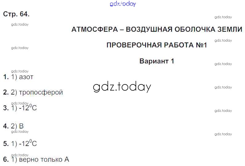 На страницах сайта gdz.today вы найдете учебный и вспомогательный материал, направленный на улучшения знаний школьной программы. ГДЗ - онлайн мир знаний Страницы (решение) 64 Тетради-экзаменатору по Географии для 5-6 класса Барабанов Просвещение Сферы 2017