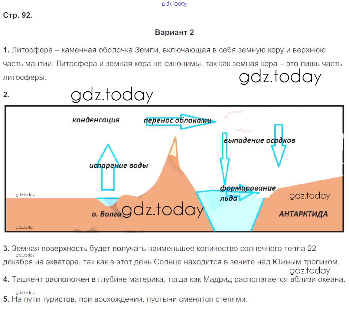 На страницах сайта gdz.today вы найдете учебный и вспомогательный материал, направленный на улучшения знаний школьной программы. ГДЗ - онлайн мир знаний Страницы (решение) 92 Тетради-экзаменатору по Географии для 5-6 класса Барабанов Просвещение Сферы 2017