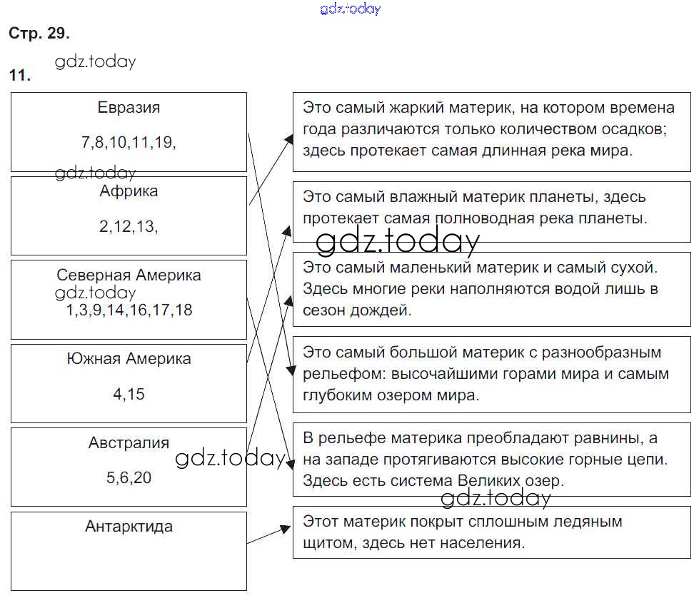 Ответы к Страницы (решение) 29 Рабочей тетради по Географии для 5 класса Баринова, Суслов Экзамен УМК 2015