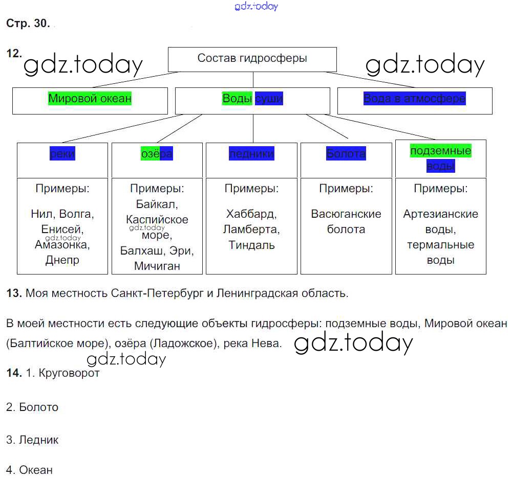 На страницах сайта gdz.today вы найдете учебный и вспомогательный материал, направленный на улучшения знаний школьной программы. ГДЗ - онлайн мир знаний Страницы (решение) 30 Рабочей тетради по Географии для 5 класса Баринова, Суслов Экзамен УМК 2015