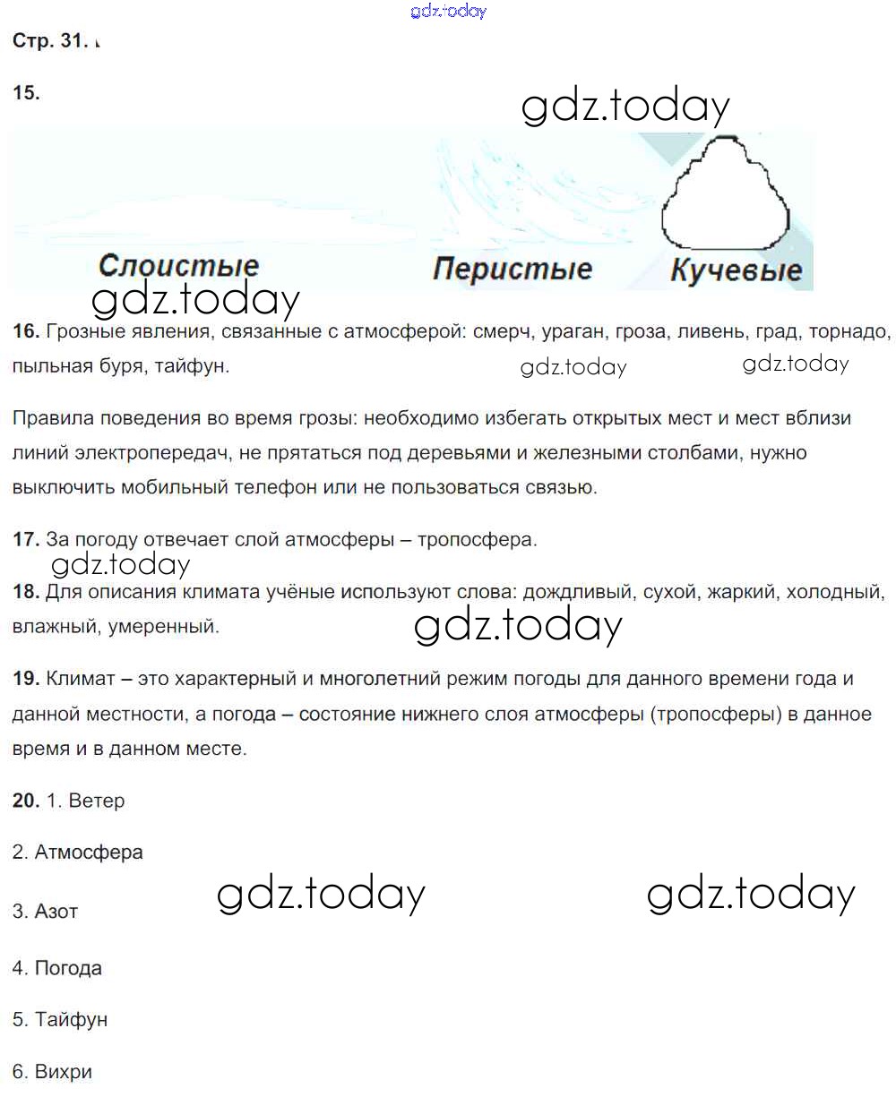 На страницах сайта gdz.today вы найдете учебный и вспомогательный материал, направленный на улучшения знаний школьной программы. ГДЗ - онлайн мир знаний Страницы (решение) 31 Рабочей тетради по Географии для 5 класса Баринова, Суслов Экзамен УМК 2015