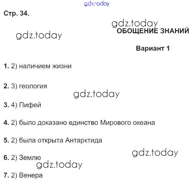 На страницах сайта gdz.today вы найдете учебный и вспомогательный материал, направленный на улучшения знаний школьной программы. ГДЗ - онлайн мир знаний Страницы (решение) 34 Рабочей тетради по Географии для 5 класса Баринова, Суслов Экзамен УМК 2015