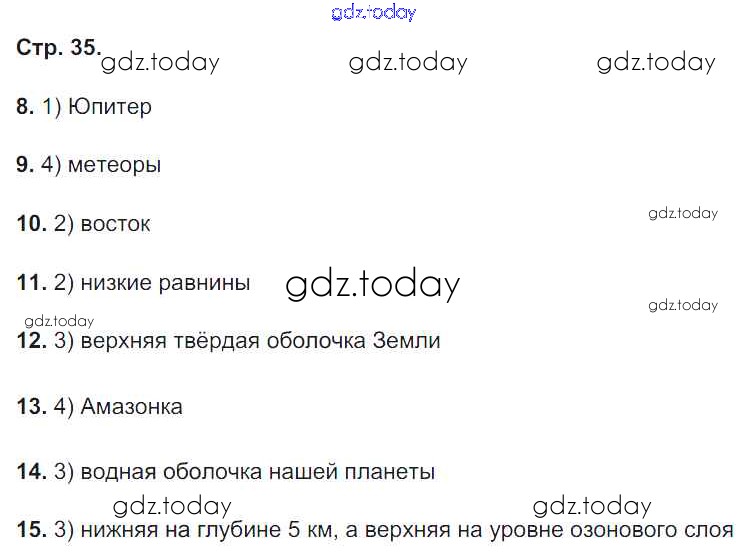 Ответы к Страницы (решение) 35 Рабочей тетради по Географии для 5 класса Баринова, Суслов Экзамен УМК 2015