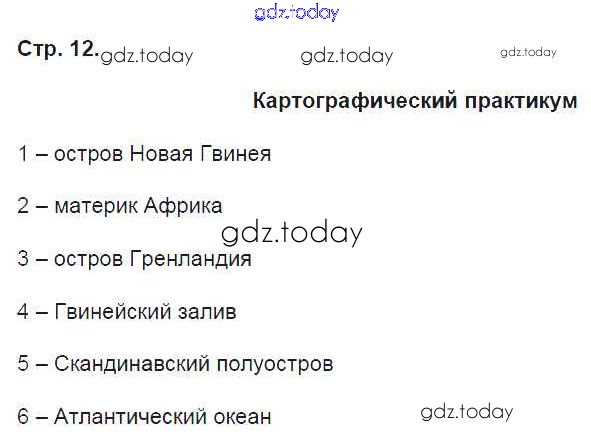На страницах сайта gdz.today вы найдете учебный и вспомогательный материал, направленный на улучшения знаний школьной программы. ГДЗ - онлайн мир знаний Страницы (решение) 12 Рабочей тетради по Географии для 5 класса Домогацких Русское слово Инновационная школа 2013