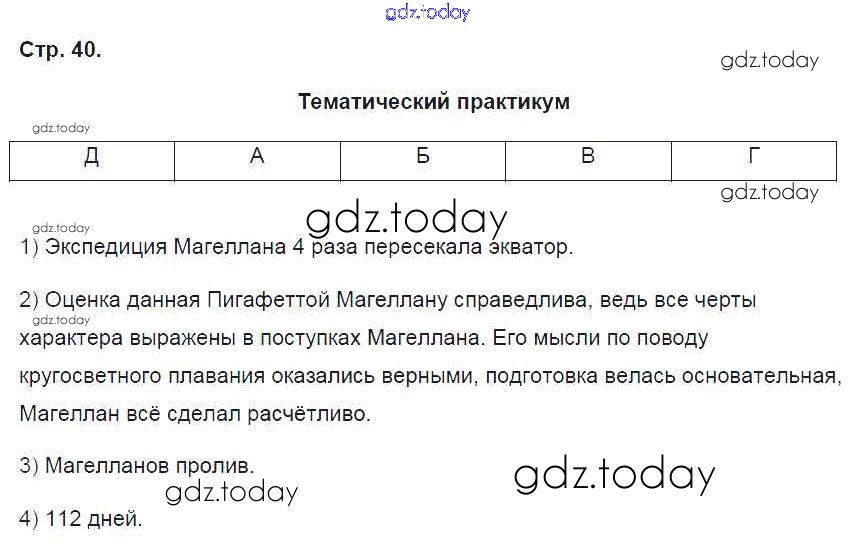 На страницах сайта gdz.today вы найдете учебный и вспомогательный материал, направленный на улучшения знаний школьной программы. ГДЗ - онлайн мир знаний Страницы (решение) 40 Рабочей тетради по Географии для 5 класса Домогацких Русское слово Инновационная школа 2013