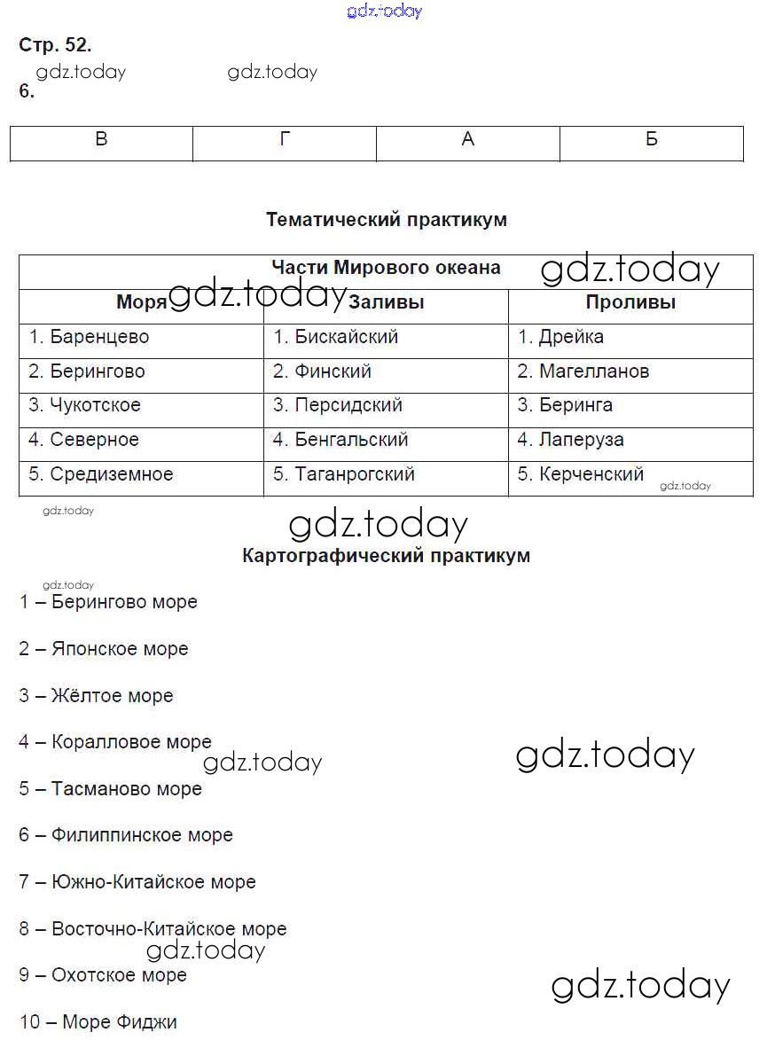 На страницах сайта gdz.today вы найдете учебный и вспомогательный материал, направленный на улучшения знаний школьной программы. ГДЗ - онлайн мир знаний Страницы (решение) 52 Рабочей тетради по Географии для 5 класса Домогацких Русское слово Инновационная школа 2013