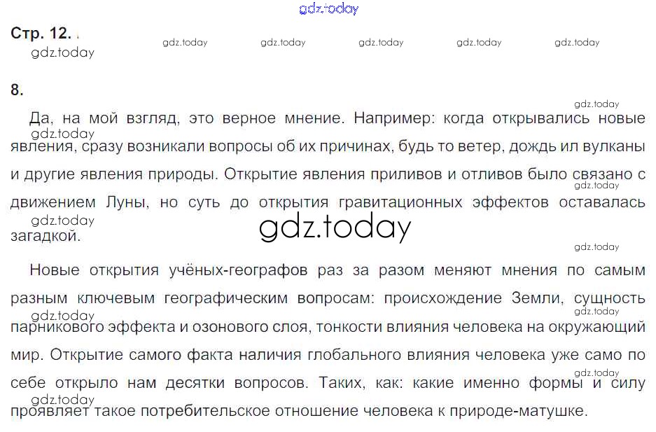 На страницах сайта gdz.today вы найдете учебный и вспомогательный материал, направленный на улучшения знаний школьной программы. ГДЗ - онлайн мир знаний Страницы (решение) 12 Рабочей тетради по Географии для 5 класса Дронов, Савельева Дрофа УМК 2016