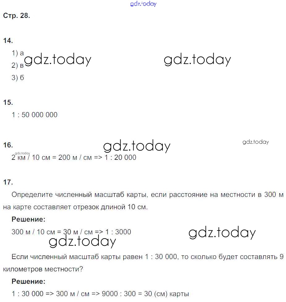 Ответы к Страницы (решение) 28 Рабочей тетради по Географии для 5 класса Дронов, Савельева Дрофа УМК 2016