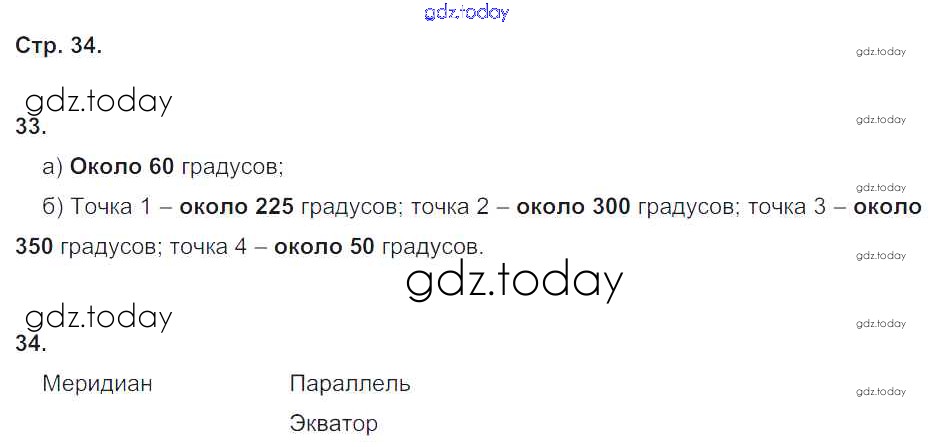 Ответы к Страницы (решение) 34 Рабочей тетради по Географии для 5 класса Дронов, Савельева Дрофа УМК 2016