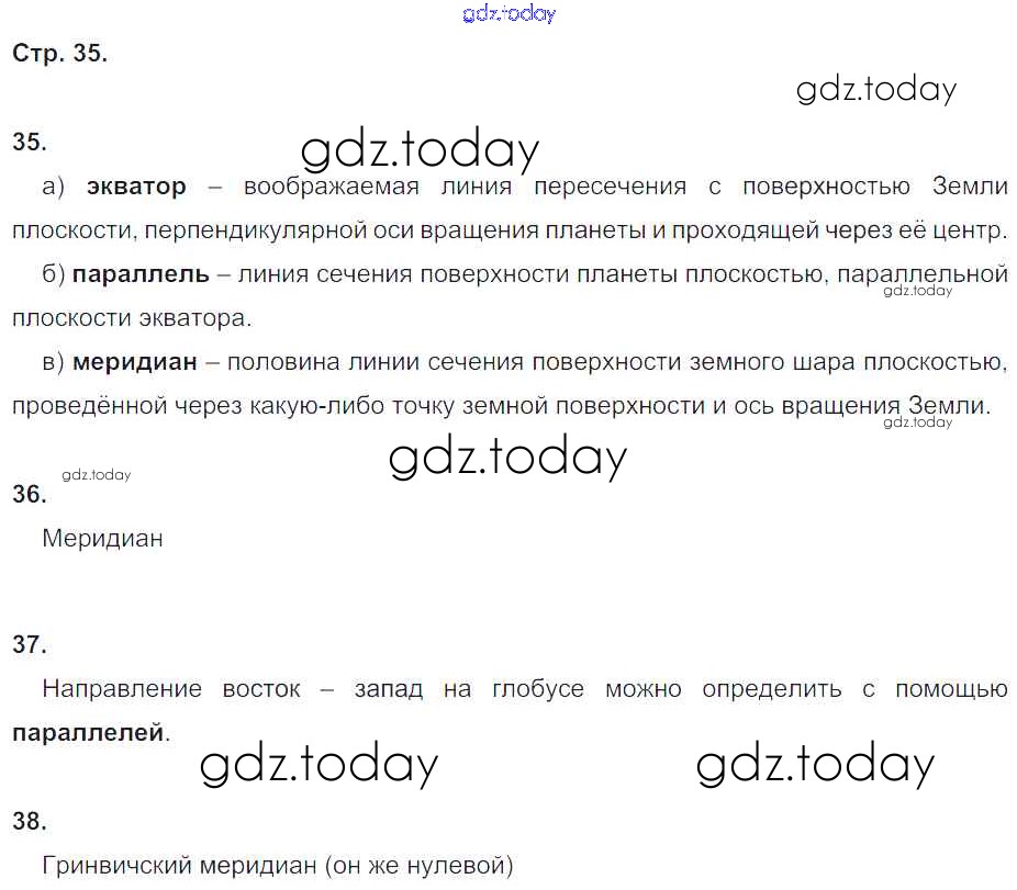 Ответы к Страницы (решение) 35 Рабочей тетради по Географии для 5 класса Дронов, Савельева Дрофа УМК 2016