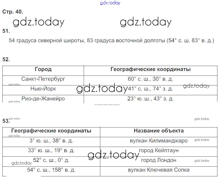 На страницах сайта gdz.today вы найдете учебный и вспомогательный материал, направленный на улучшения знаний школьной программы. ГДЗ - онлайн мир знаний Страницы (решение) 40 Рабочей тетради по Географии для 5 класса Дронов, Савельева Дрофа УМК 2016