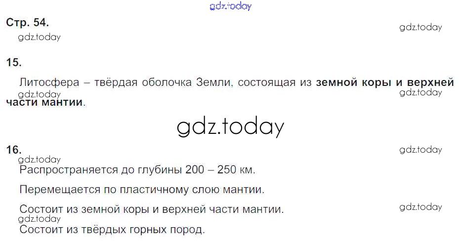 На страницах сайта gdz.today вы найдете учебный и вспомогательный материал, направленный на улучшения знаний школьной программы. ГДЗ - онлайн мир знаний Страницы (решение) 54 Рабочей тетради по Географии для 5 класса Дронов, Савельева Дрофа УМК 2016