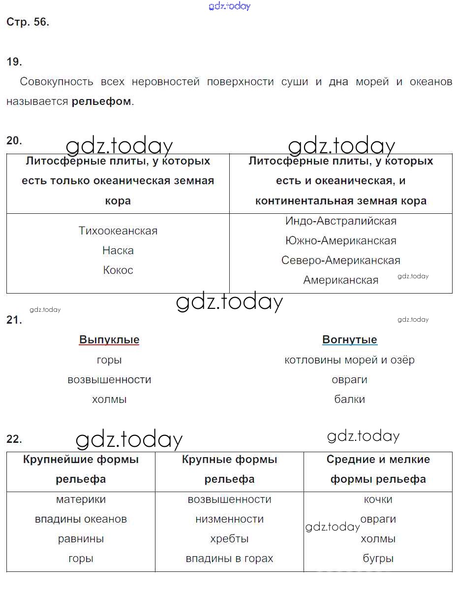 Ответы к Страницы (решение) 56 Рабочей тетради по Географии для 5 класса Дронов, Савельева Дрофа УМК 2016