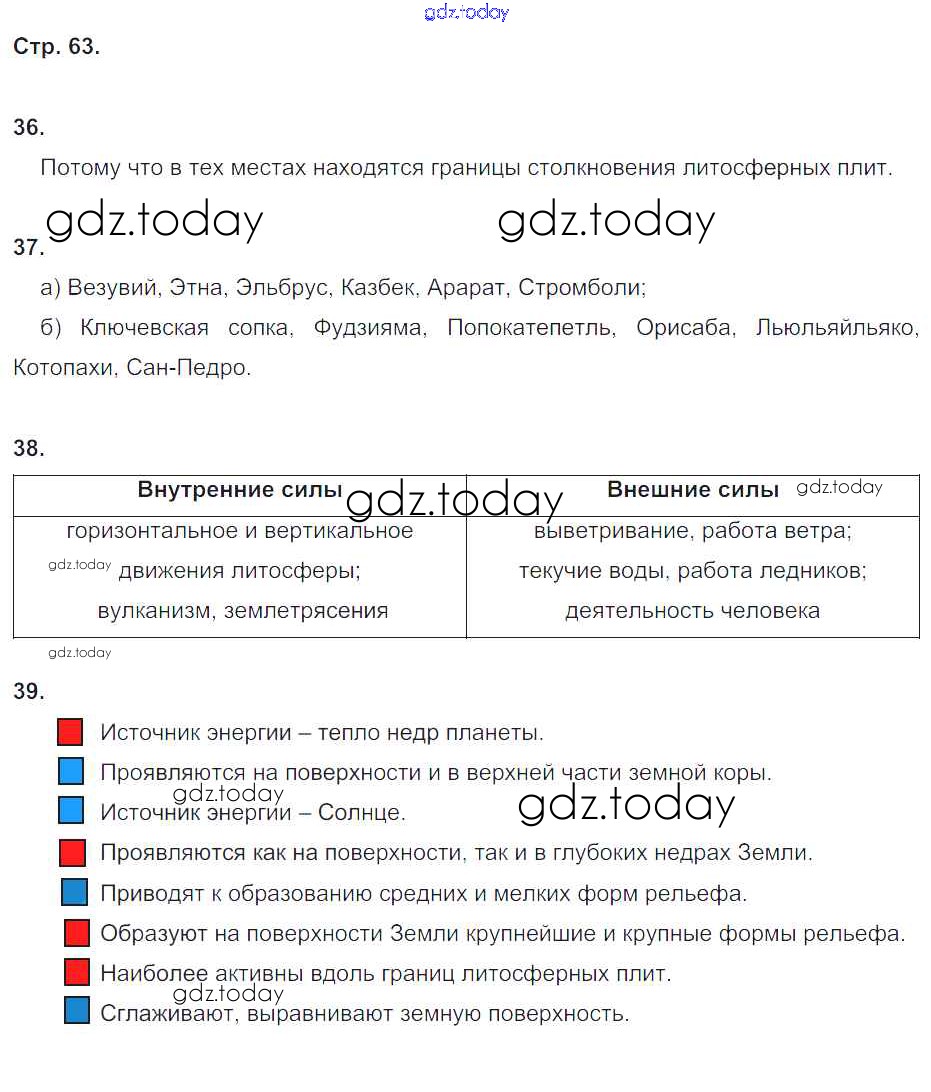 Ответы к Страницы (решение) 63 Рабочей тетради по Географии для 5 класса Дронов, Савельева Дрофа УМК 2016