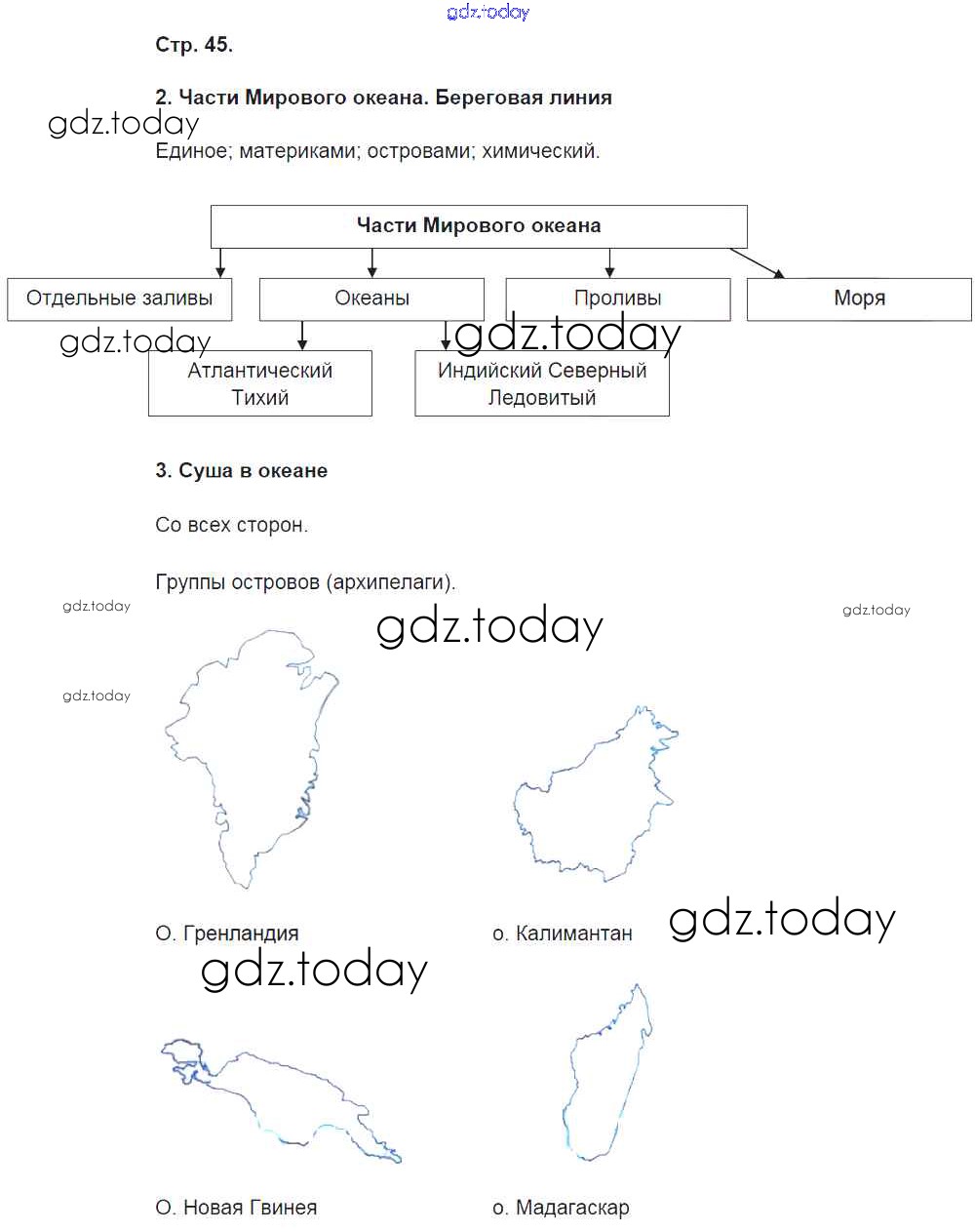 На страницах сайта gdz.today вы найдете учебный и вспомогательный материал, направленный на улучшения знаний школьной программы. ГДЗ - онлайн мир знаний Страницы (решение) 45 Рабочей тетради по Географии для 5 класса Летягин Вентана-граф Алгоритм успеха 2020