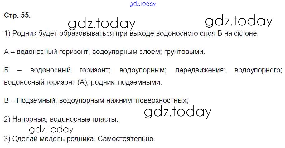 На страницах сайта gdz.today вы найдете учебный и вспомогательный материал, направленный на улучшения знаний школьной программы. ГДЗ - онлайн мир знаний Страницы (решение) 55 Рабочей тетради по Географии для 5 класса Летягин Вентана-граф Алгоритм успеха 2020