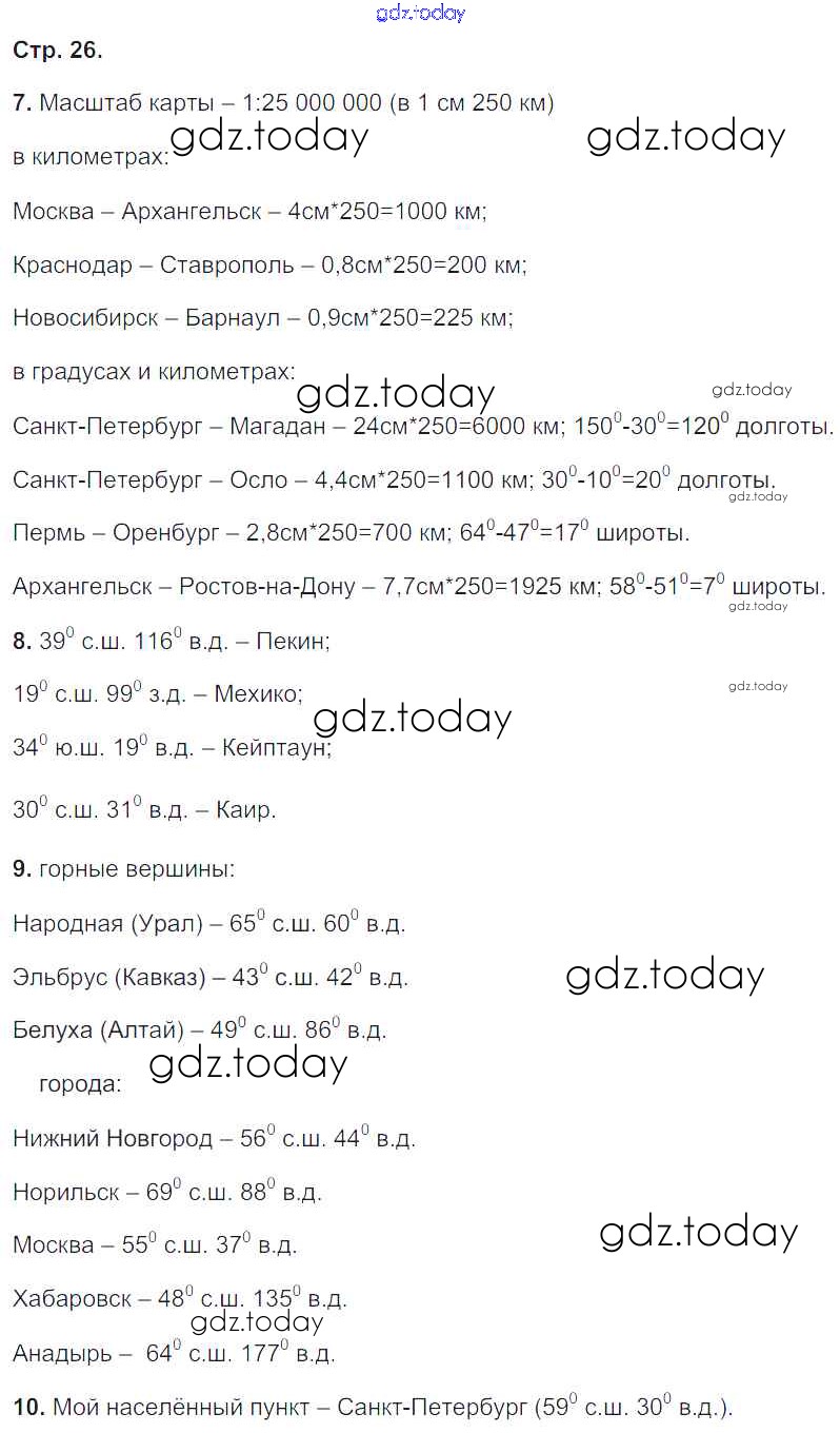 На страницах сайта gdz.today вы найдете учебный и вспомогательный материал, направленный на улучшения знаний школьной программы. ГДЗ - онлайн мир знаний Решение к части 1. Страницы 26 Тетради-тренажеру по Географии для 5-6 класса Лобжанидзе Просвещение Сферы 2014