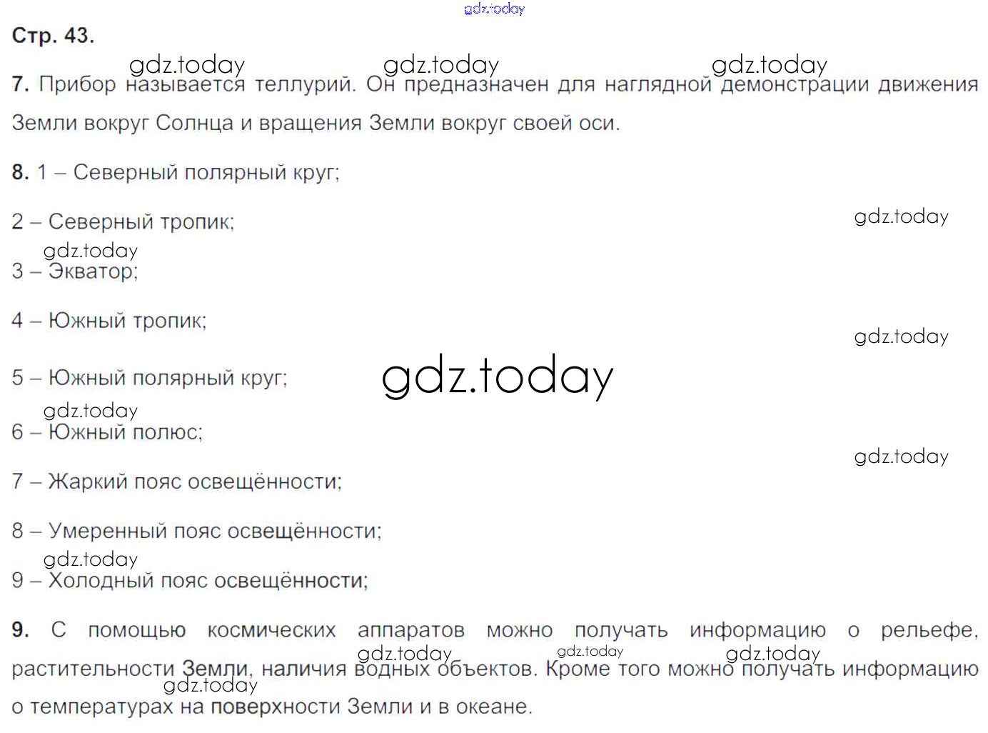На страницах сайта gdz.today вы найдете учебный и вспомогательный материал, направленный на улучшения знаний школьной программы. ГДЗ - онлайн мир знаний Решение к части 1. Страницы 43 Тетради-тренажеру по Географии для 5-6 класса Лобжанидзе Просвещение Сферы 2014
