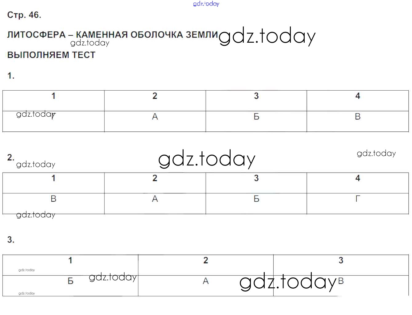 На страницах сайта gdz.today вы найдете учебный и вспомогательный материал, направленный на улучшения знаний школьной программы. ГДЗ - онлайн мир знаний Решение к части 1. Страницы 46 Тетради-тренажеру по Географии для 5-6 класса Лобжанидзе Просвещение Сферы 2014