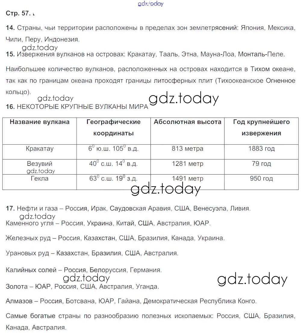 На страницах сайта gdz.today вы найдете учебный и вспомогательный материал, направленный на улучшения знаний школьной программы. ГДЗ - онлайн мир знаний Решение к части 1. Страницы 57 Тетради-тренажеру по Географии для 5-6 класса Лобжанидзе Просвещение Сферы 2014