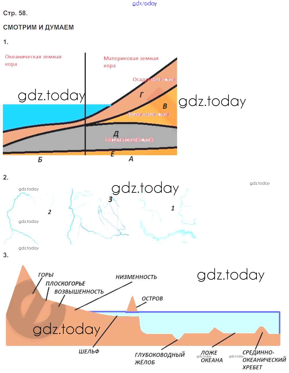 На страницах сайта gdz.today вы найдете учебный и вспомогательный материал, направленный на улучшения знаний школьной программы. ГДЗ - онлайн мир знаний Решение к части 1. Страницы 58 Тетради-тренажеру по Географии для 5-6 класса Лобжанидзе Просвещение Сферы 2014