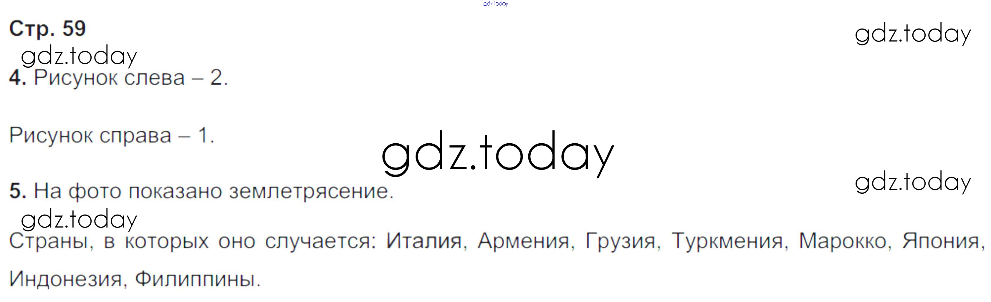 На страницах сайта gdz.today вы найдете учебный и вспомогательный материал, направленный на улучшения знаний школьной программы. ГДЗ - онлайн мир знаний Решение к части 1. Страницы 59 Тетради-тренажеру по Географии для 5-6 класса Лобжанидзе Просвещение Сферы 2014