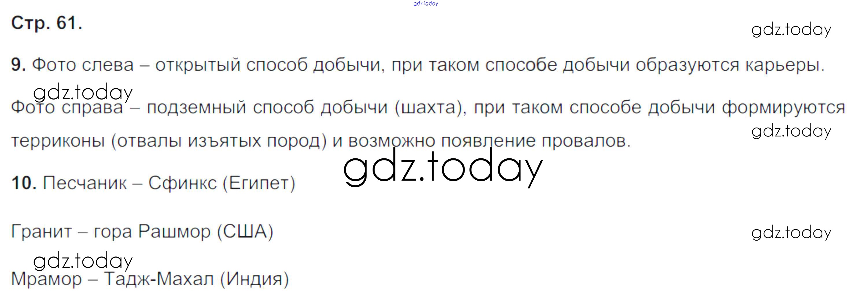 На страницах сайта gdz.today вы найдете учебный и вспомогательный материал, направленный на улучшения знаний школьной программы. ГДЗ - онлайн мир знаний Решение к части 1. Страницы 61 Тетради-тренажеру по Географии для 5-6 класса Лобжанидзе Просвещение Сферы 2014
