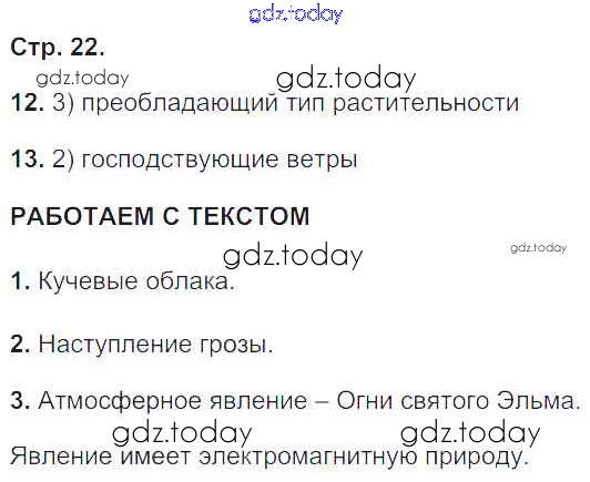 На страницах сайта gdz.today вы найдете учебный и вспомогательный материал, направленный на улучшения знаний школьной программы. ГДЗ - онлайн мир знаний Решение к части 2. Страницы 22 Тетради-тренажеру по Географии для 5-6 класса Лобжанидзе Просвещение Сферы 2014