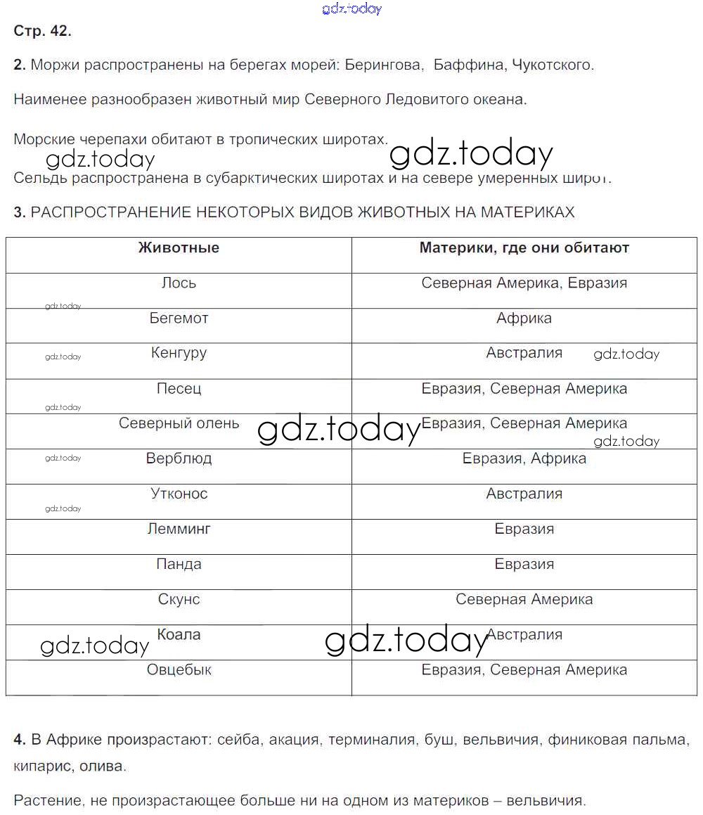 На страницах сайта gdz.today вы найдете учебный и вспомогательный материал, направленный на улучшения знаний школьной программы. ГДЗ - онлайн мир знаний Решение к части 2. Страницы 42 Тетради-тренажеру по Географии для 5-6 класса Лобжанидзе Просвещение Сферы 2014