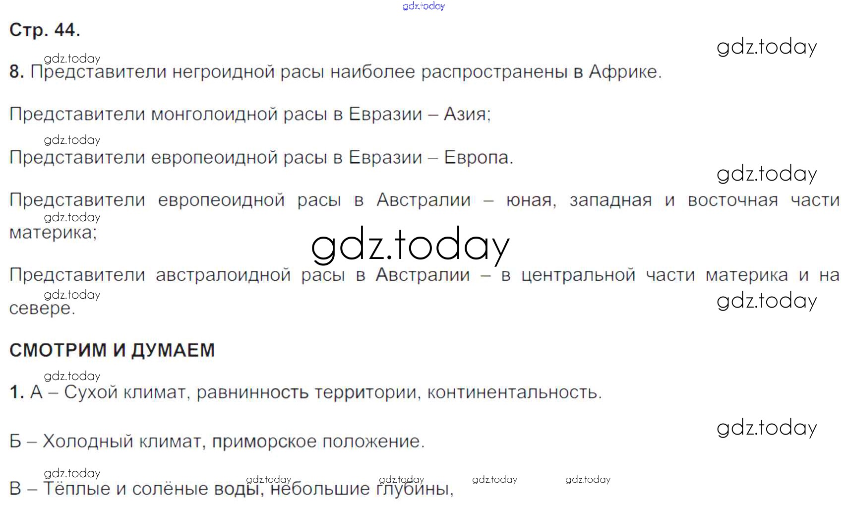На страницах сайта gdz.today вы найдете учебный и вспомогательный материал, направленный на улучшения знаний школьной программы. ГДЗ - онлайн мир знаний Решение к части 2. Страницы 44 Тетради-тренажеру по Географии для 5-6 класса Лобжанидзе Просвещение Сферы 2014
