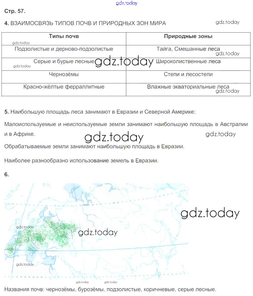 На страницах сайта gdz.today вы найдете учебный и вспомогательный материал, направленный на улучшения знаний школьной программы. ГДЗ - онлайн мир знаний Решение к части 2. Страницы 57 Тетради-тренажеру по Географии для 5-6 класса Лобжанидзе Просвещение Сферы 2014