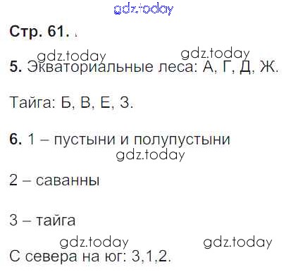 На страницах сайта gdz.today вы найдете учебный и вспомогательный материал, направленный на улучшения знаний школьной программы. ГДЗ - онлайн мир знаний Решение к части 2. Страницы 61 Тетради-тренажеру по Географии для 5-6 класса Лобжанидзе Просвещение Сферы 2014